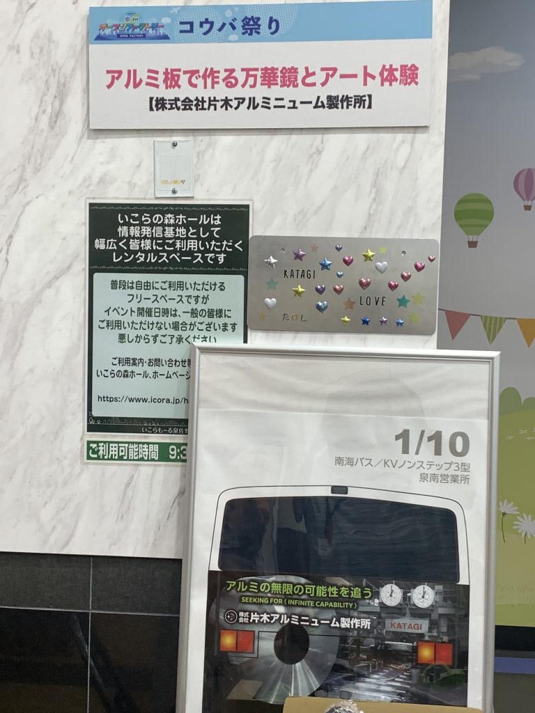 トピックス 2025.12.04 「泉州オープンファクトリー2025」にアート体験教室を出店 150名以上の子供たちがアルミ板を使った 万華鏡やアルミ板表札づくりを体験した << 第37回片木杯 大山町青少年育成剣道大会 南海バスにラッピング広告を出しました。 >>